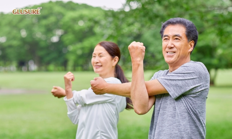 การยกน้ำหนักเบาๆ การใช้ยางยืดออกกำลังกาย ท่าแพลงก์ หรือท่าสควอท ขั้นพื้นฐาน จะช่วยเพิ่มมวลกล้ามเนื้อ ซึ่งเป็นปัจจัยสำคัญในการควบคุมระดับน้ำตาลในเลือดให้คงที่ในระยะยาว