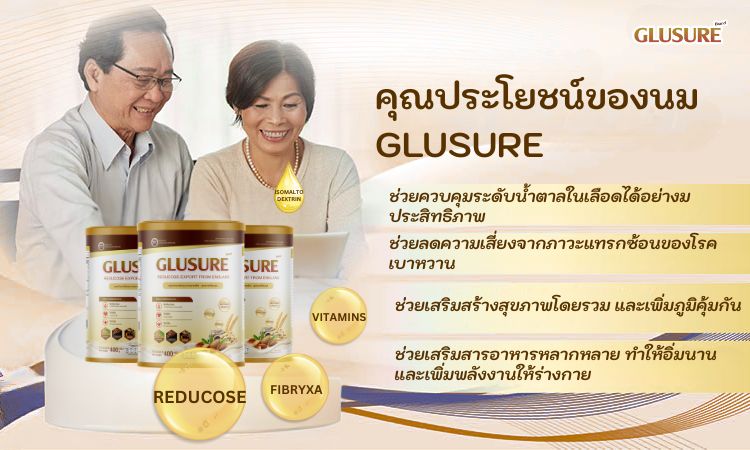 นอกจากการรับประทานอาหารที่มีประโยชน์ ออกกำลังกาย และตรวจสุขภาพประจำปีแล้ว ผู้ป่วยโรคเบาหวานในประเทศไทยยังสามารถเลือกดื่มนม Glusure ซึ่งเป็นผลิตภัณฑ์ที่ได้รับการรับรองจากสำนักงานคณะกรรมการอาหารและยา (อย.) ว่าปลอดภัยและมีประสิทธิภาพอีกด้วย